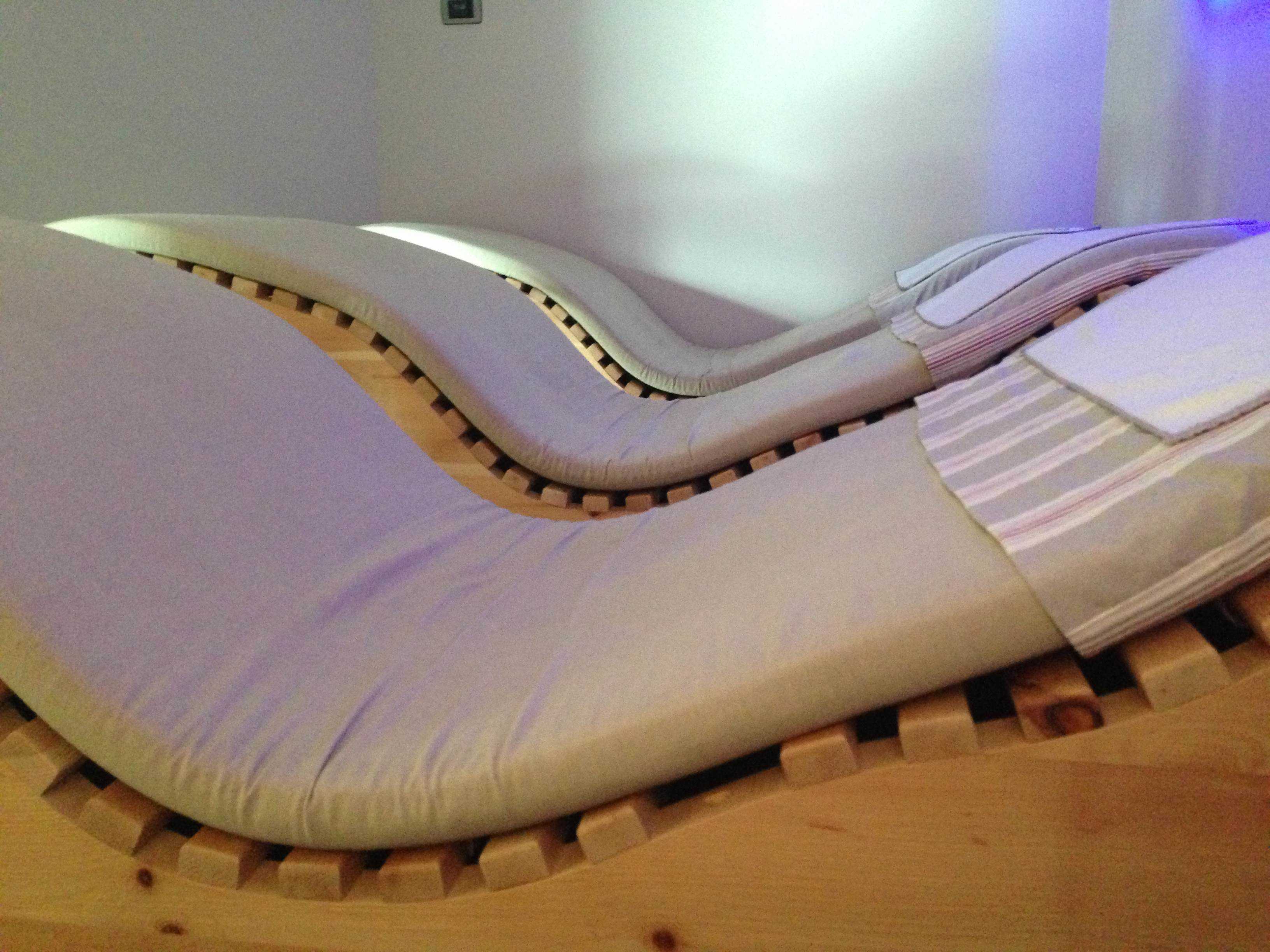 – la sala, chiamata “sinfonia“, dove mi sono rilassata su un comodo lettino ergonomico ascoltando il rumore dell’acqua e guardando i giochi di colori.