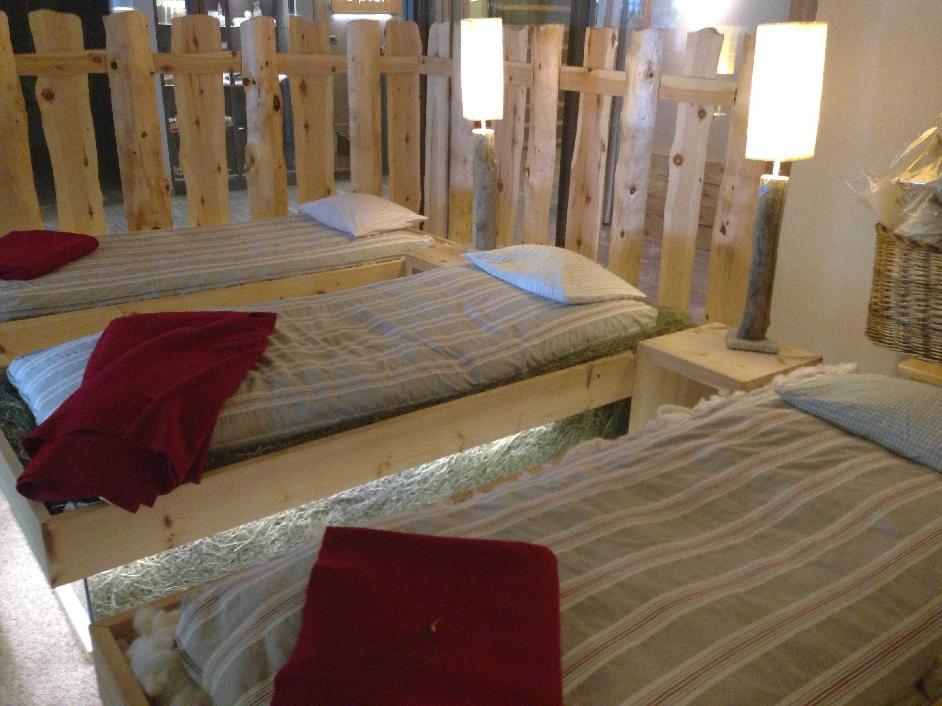 – la sala, chiamata “bosco“, dove dentro ci sono tre lettini. Uno arredato con il legno di cirmolo, con proprietà benefiche e sedative, uno con la lana naturale e infine un altro con il fieno dei pascoli della Val di Fassa.